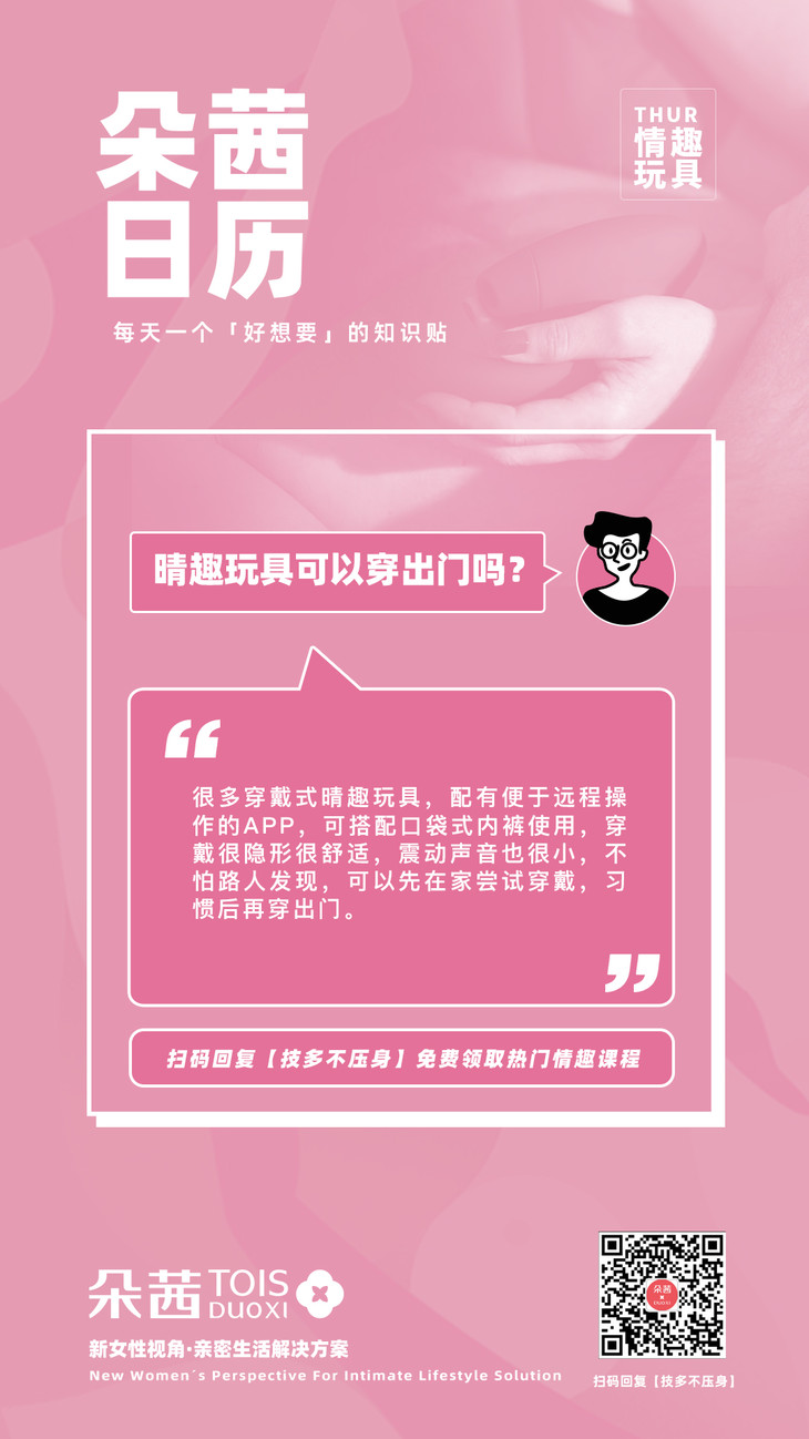 朵茜潮玩,推崇自信、满足至上的生活方式,专业的玩具测评和课程体系,帮助并陪伴你解决亲密关系中的问题。带你玩转闺房时尚!