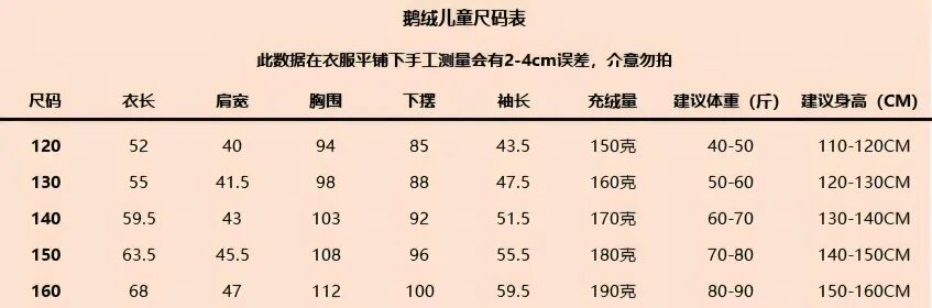 不限性别,版型时尚,儿童120-160码可选,成人S-2XL码可选,不同码数充绒量不同,具体以收到的码数为准。