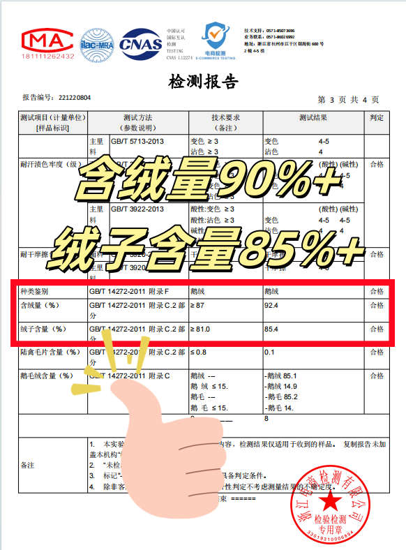 含绒量90%+!绒子含量85%+!要知道新国标合格率才81%......