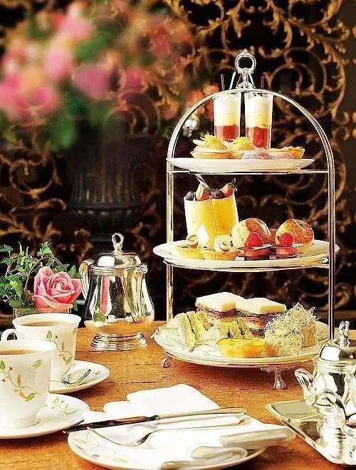传统的英式下午茶,红茶、伯爵茶和三层甜点是不可或缺的元素,英国人也喜爱用精美的骨瓷茶具和餐具为下午茶赋予优雅的形象和品饮方式。