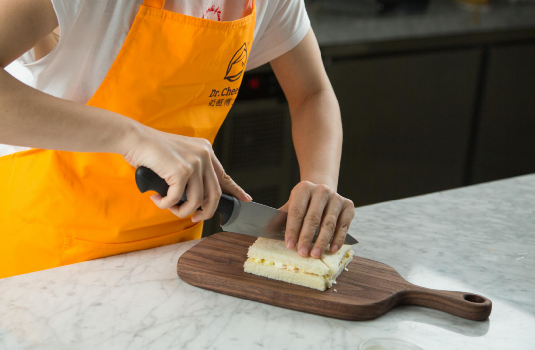 3.盖上另一片吐司,对角斜切,分为4小份。