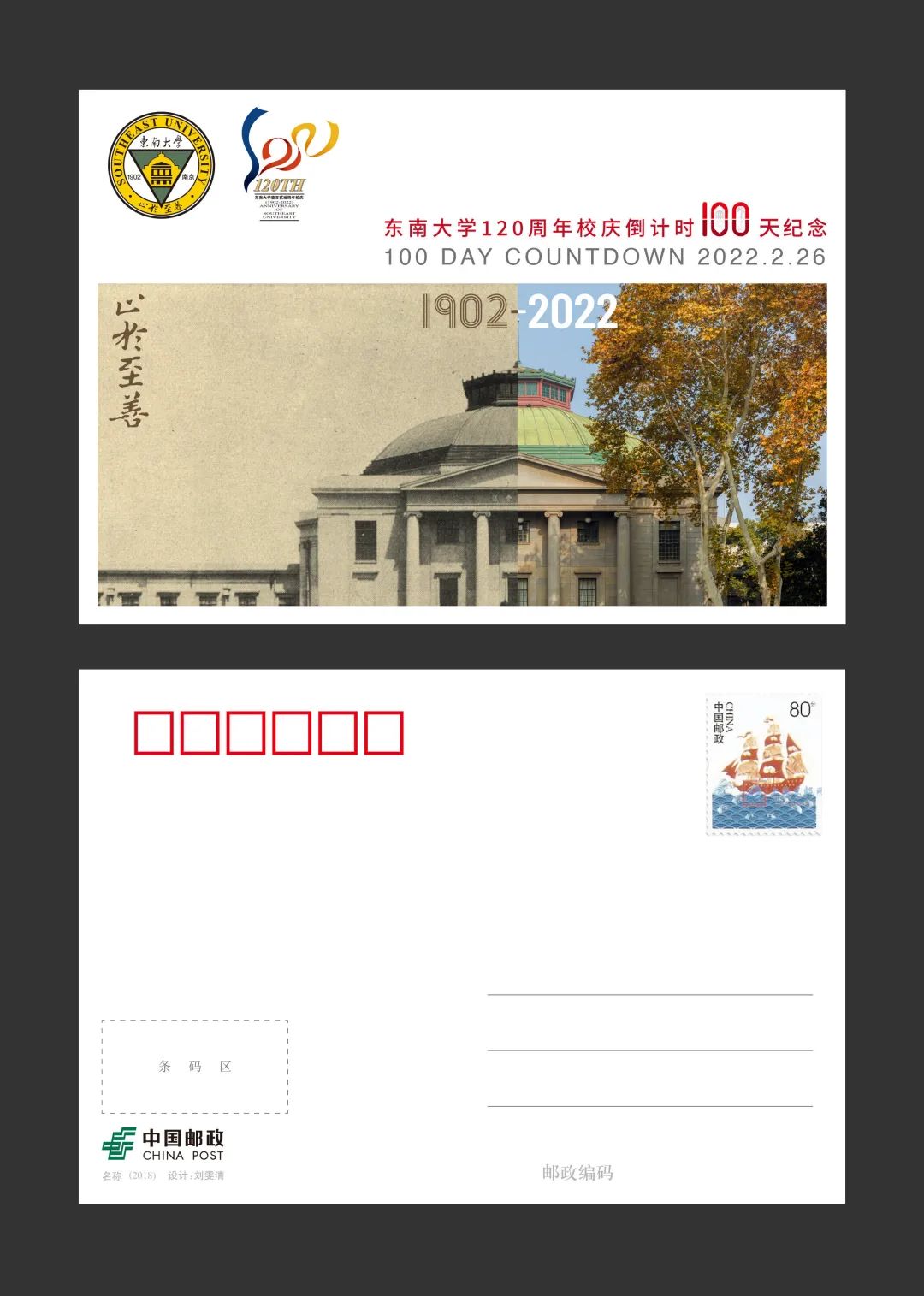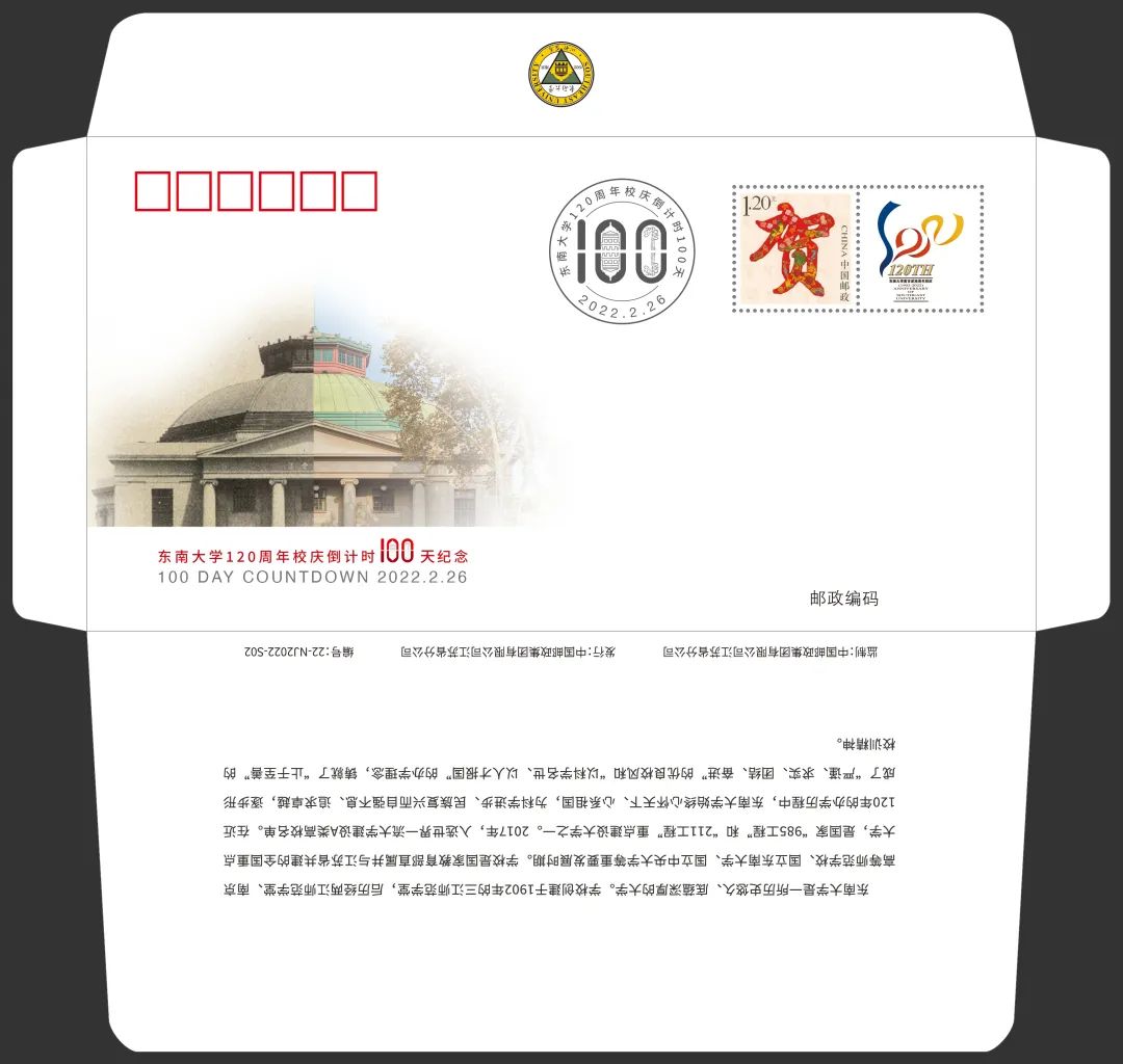 2月26日上午,东南大学120周年校庆倒计时100天启动仪式在东南大学四牌楼校区举行。中国邮政为东南大学限量发行的《东南大学120周年校庆倒计时100天》纪念封与明信片也于当日首发。