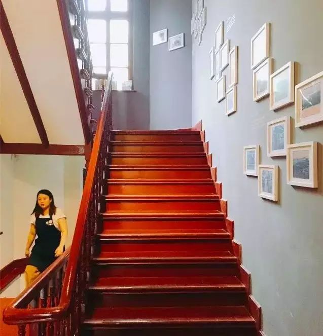 你顺着楼梯往上走,历史也在走。楼梯上布满了自1900年起每十年为一组的老照片,直至顶楼。这时,眼前忽现优雅的卡普勒餐厅,坐在阳台朝南侧栈桥方向望去,满目都是红瓦民居,在海天交界的地方似乎还能看到回澜阁。