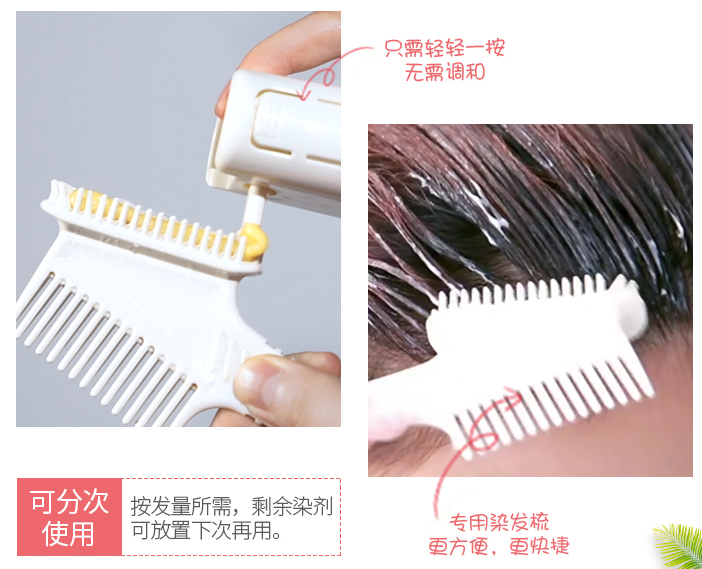 不同于传统染发剂赠送的扁梳,它做了三个专业分区:鬓角梳、染发梳、扁平梳。