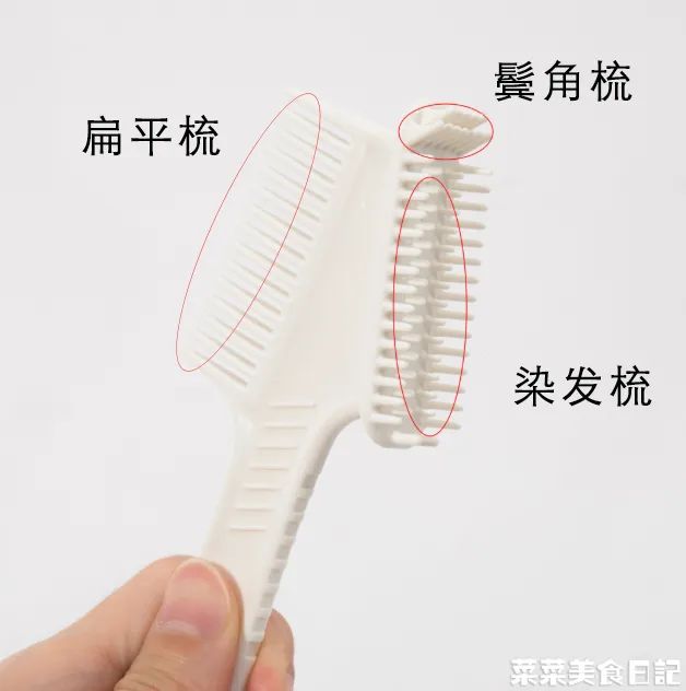 扁平梳:通体梳顺头发,而且梳齿更长,能照顾到厚发的童鞋,让染发剂更均匀地覆盖发丝。