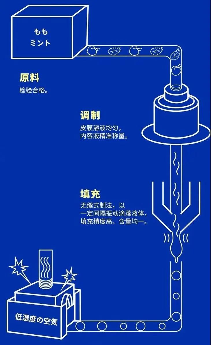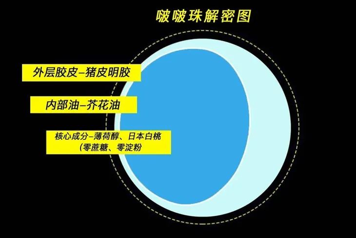 在制作时,他们还采用了高级无缝工艺,打造出啵啵珠的360°全球面,牢牢包裹住里面的高浓度薄荷。