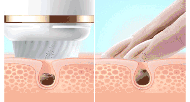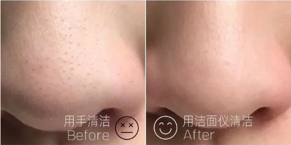 通过刷头快速旋转,增强水流流速,从而把毛孔里的污垢彻底带出来,达到