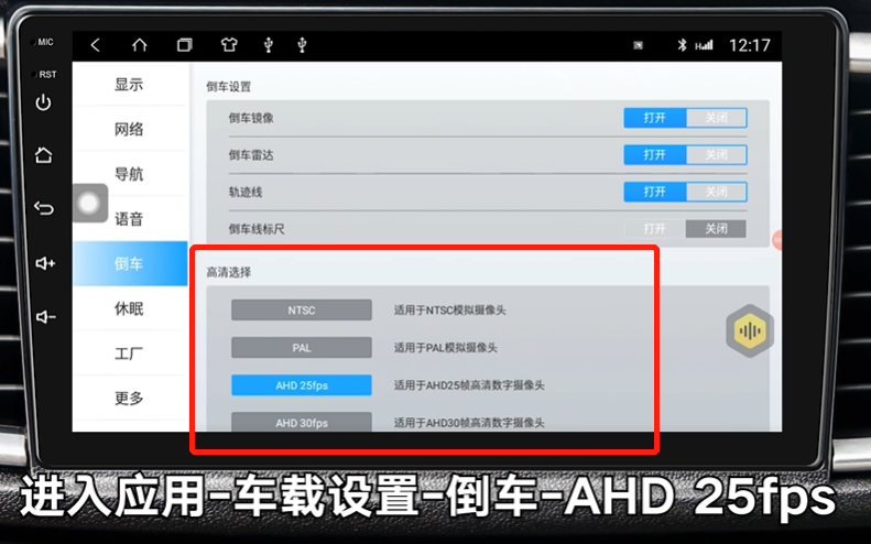 也就是说你接了什么信号的倒车后视,就需要选择对应信号。比如:你接的是AHD1080P,就需要选择对应AHD1080P,否则,可能会没画面