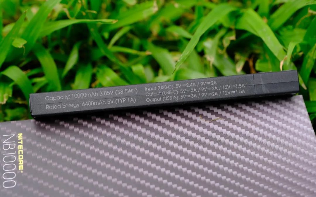 NB10000的两端,一端印着Nitecore的logo和NB10000的型号。