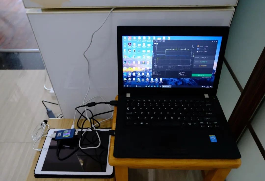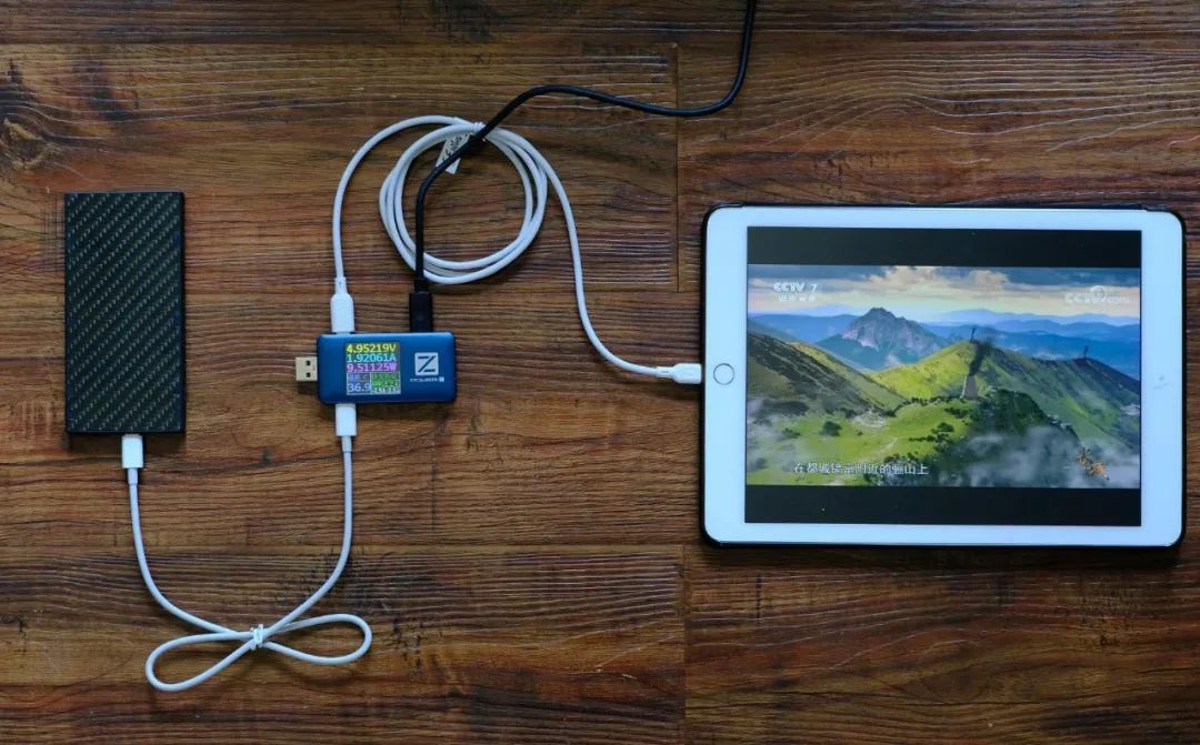 先用NB10000的A口供电,测试仪连Anker USB A to L MFI线充iPad。