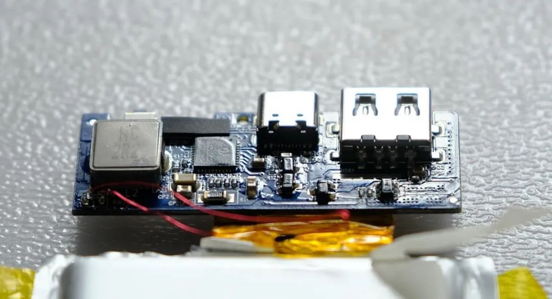 NB10000的外壳并不是完全密封的,防水靠的是在电路板上刷胶,逆着光可以很明显的看到电路板上刷胶的痕迹。