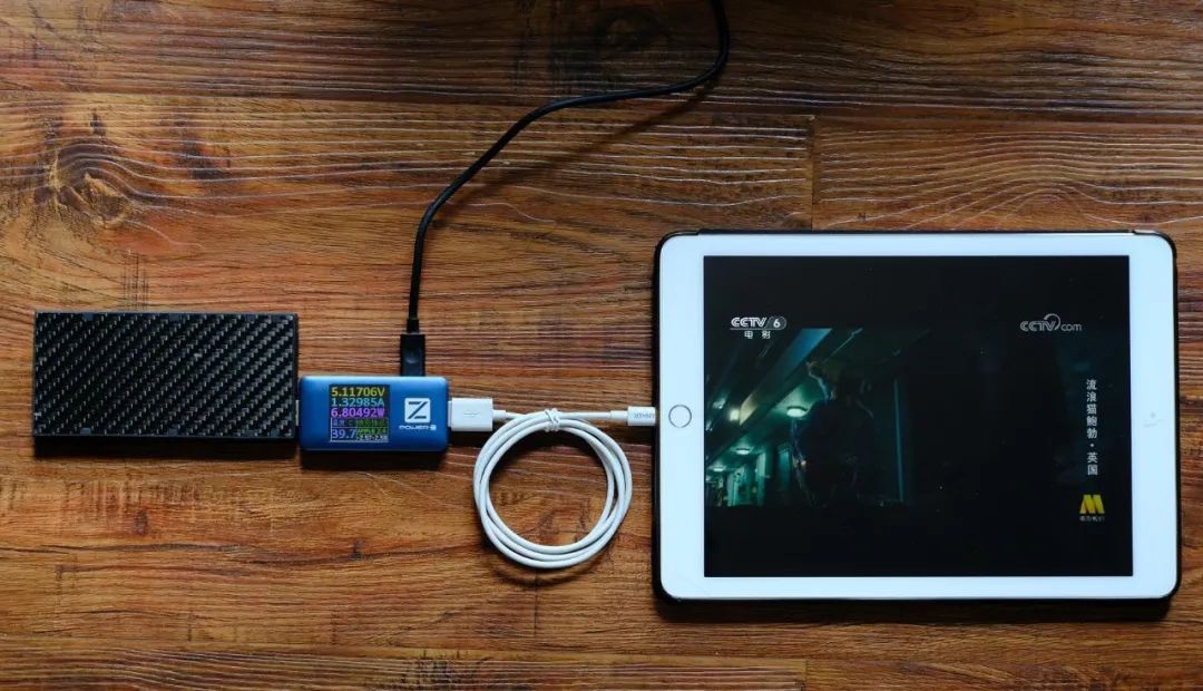再用NB10000的C口供电,测试仪连Ravpower USB C to L MFI线充iPad。
