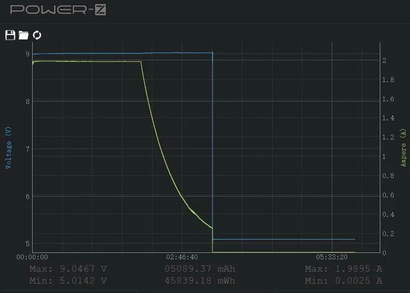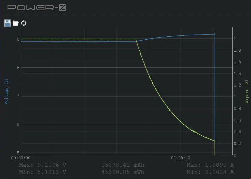 两次测试都输入了大约45Wh的电能,对比38.5Wh的标称容量,充电效率约85.55%,