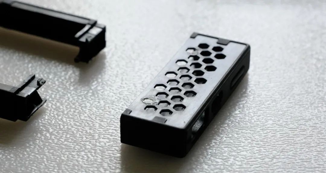 框架的上部分采用了蜂窝状镂空来降低重量并保持强度。从结构上来看,碳纤维强化框架的横向强度和碳纤维板的纵向拉扯共同为这块小黑砖带来了扎实的手感。