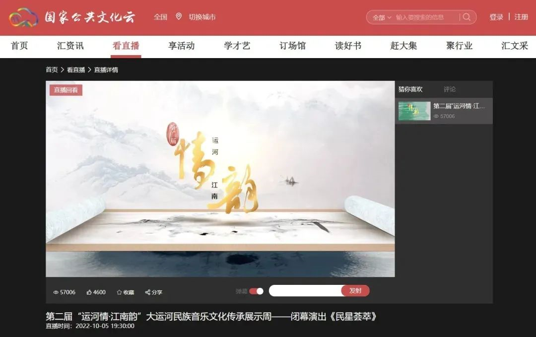 2021年以来,“运河情·江南韵”大运河民族音乐文化传承展示周已连续成功举办两届。首届展演通过运河沿线各地文化馆创新编排的舞台节目,生动反映了运河沿岸风貌与时代精神;第二届展演聚焦线上,带来了更为丰富的艺术表现形式,提供“云”上文化大餐……如今,“运河情·江南韵”已打造成为主题鲜明、内容丰富、群众欢迎、影响广泛的大运河活动全国性品牌。