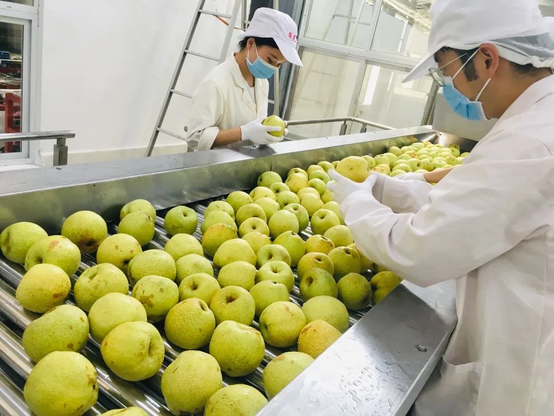 就拿清洗来说,砀山酥梨要先通过3道清洗,进入选果台,再由超声波高压喷淋5道清洗,冲掉梨杆,比手洗更干净更放心。