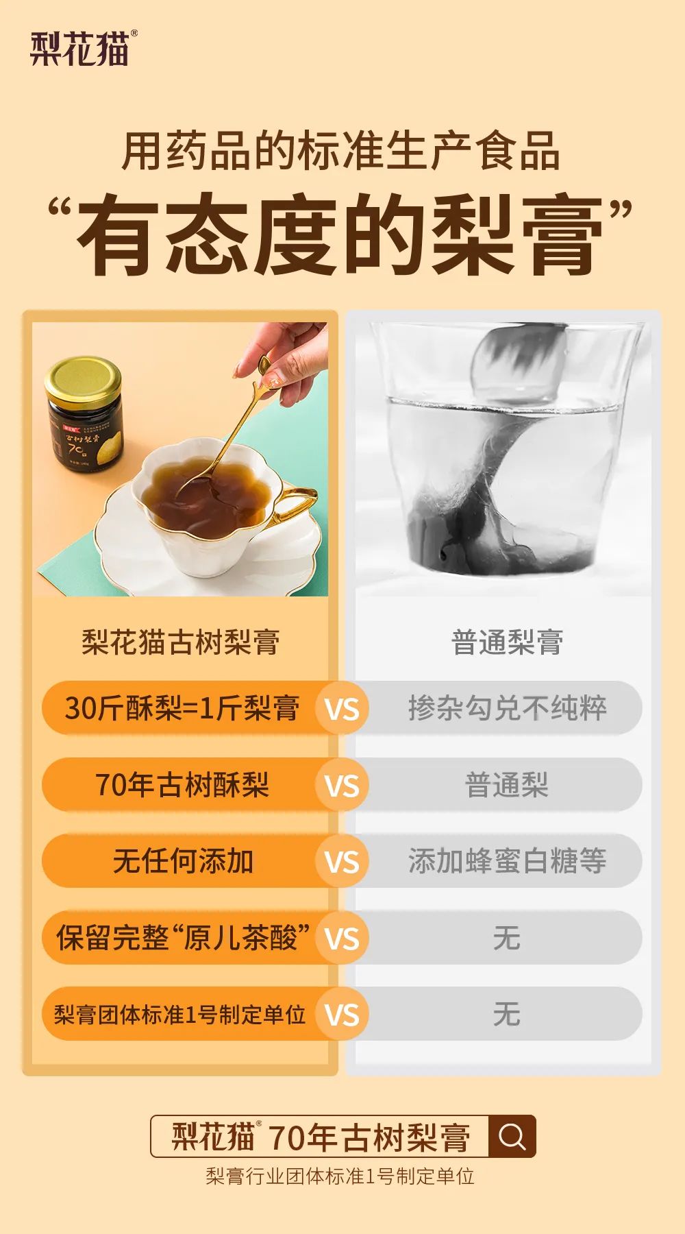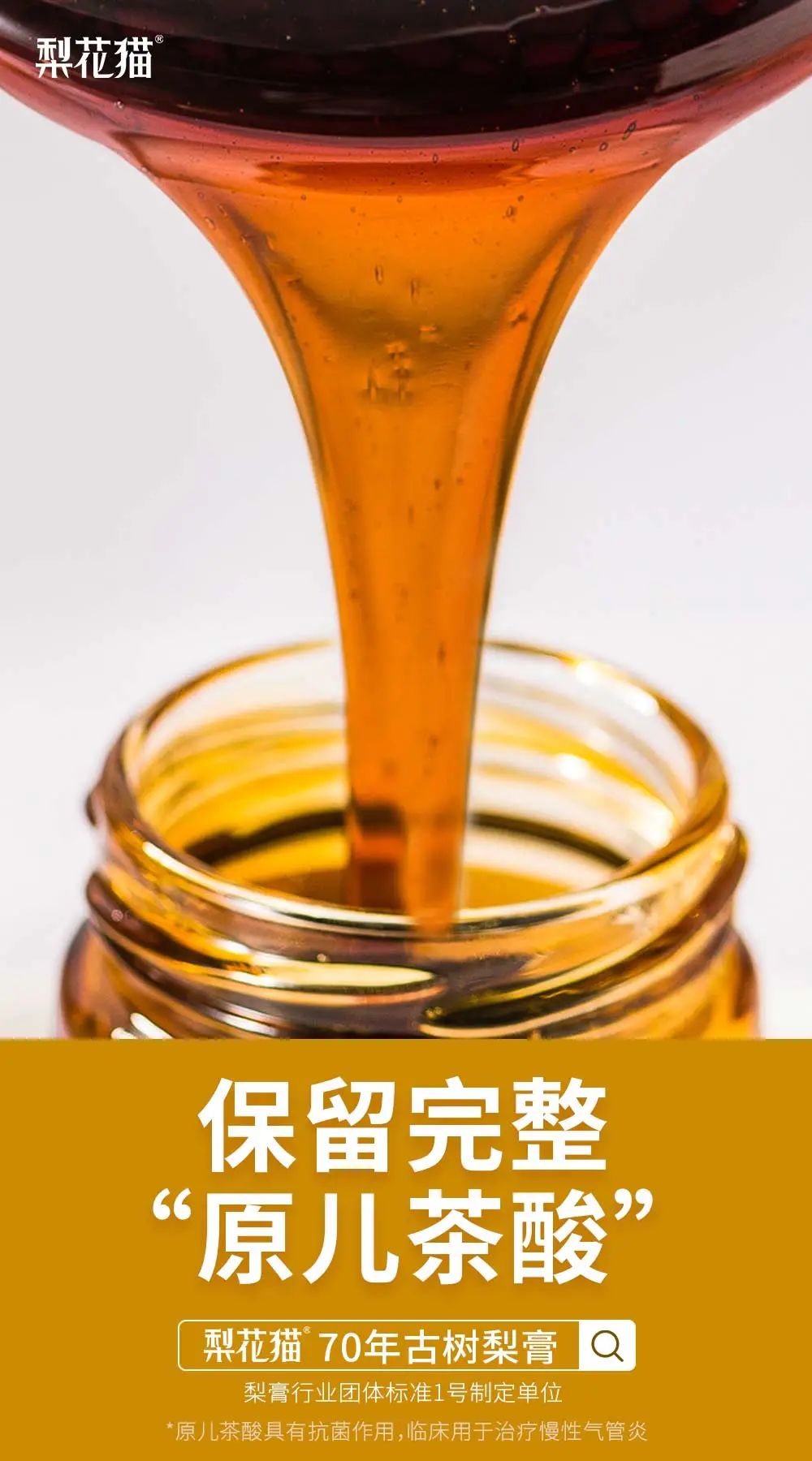 今天小编为大家强烈推荐这款梨花猫古树梨膏,精选砀山70年古树酥梨,历经 30h熬制,重新定义什么是好梨膏!