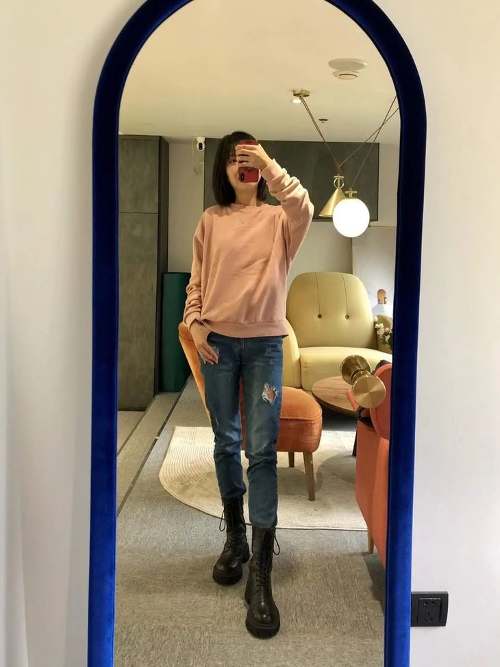 最基础的牛仔裤加上最基础的马丁靴就能碰撞出不一样的美感,具有简单随性的风格。