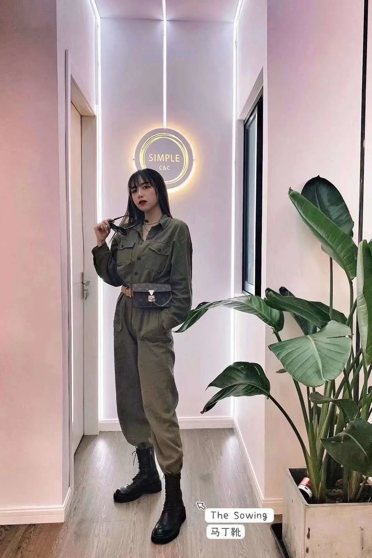 害怕老寒腿或者对自己腿部条件不是很自信的美女们,就完全可以选择马丁靴+连体裤的这种搭配,提高腰身同样拥有超模大长腿。