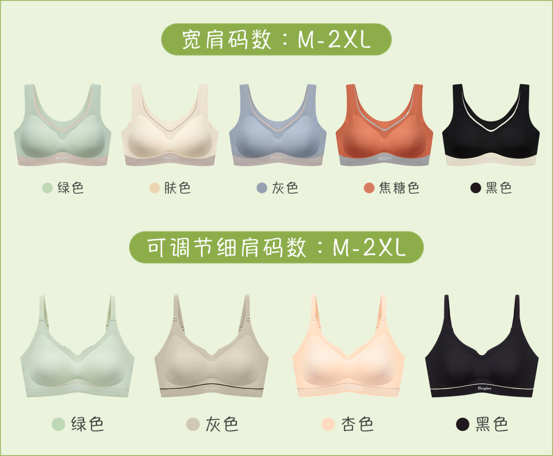 选宽肩还是可调节细肩?选哪种颜色?第一眼喜欢哪个就挑它: