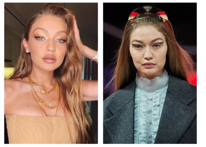 刚生子不久的Gigi和女神安妮·海瑟薇(Anne Hathaway)之前就因为肌肤老化问题被不少粉丝质疑过早“脸垮”