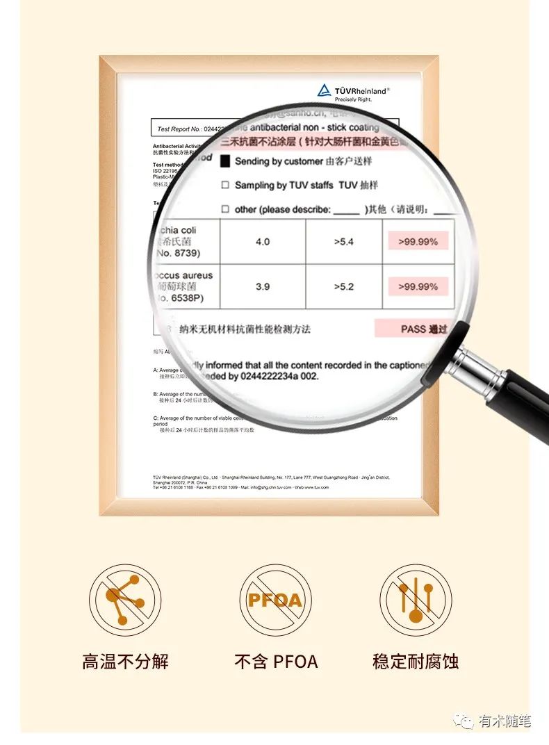 优质抗菌不粘层,德国TUV认证99.99%抗菌