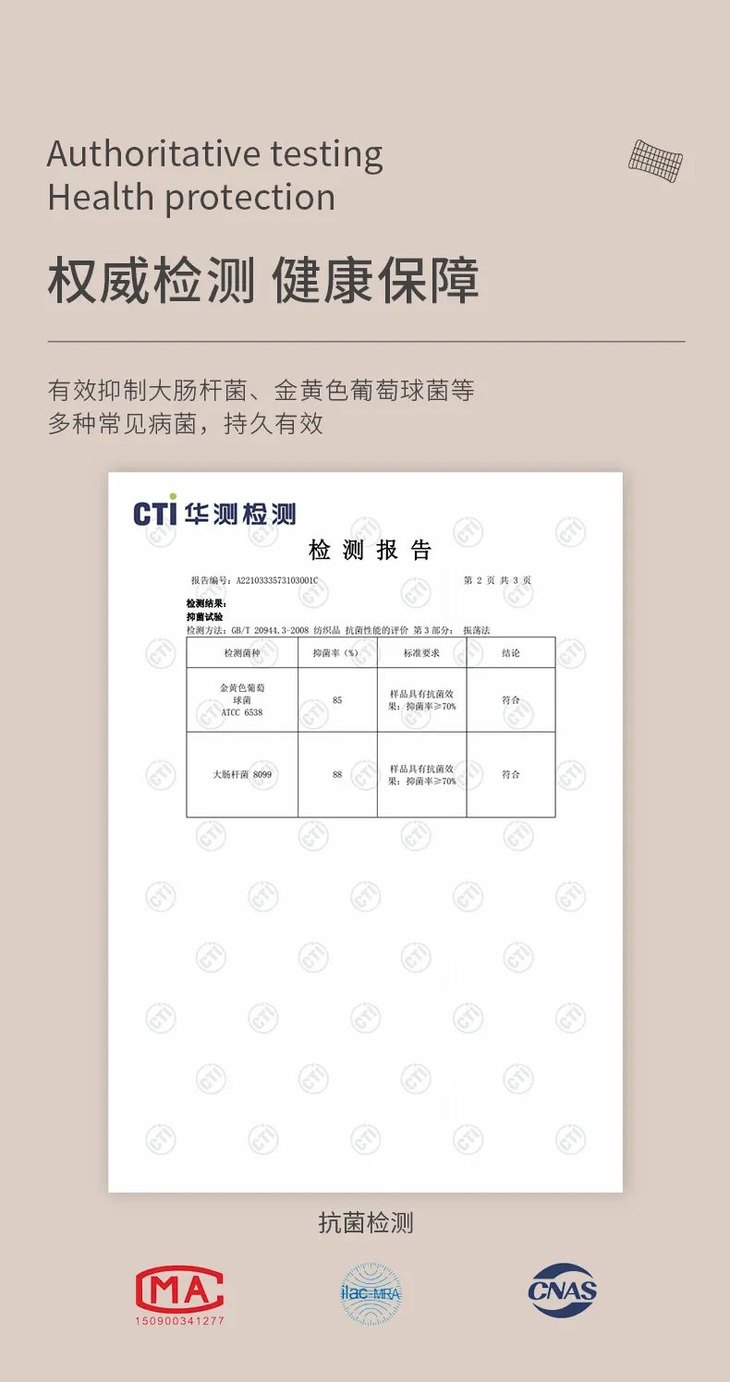 绗缝中填充的抑菌纤维,纤维分子中添加纳米级抗菌剂,可以达到长久的守护!