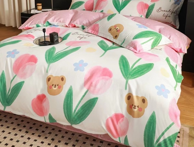 粉色的郁金香在清新美丽之外,还添加了一些活泼俏皮,给孩子睡也不错。