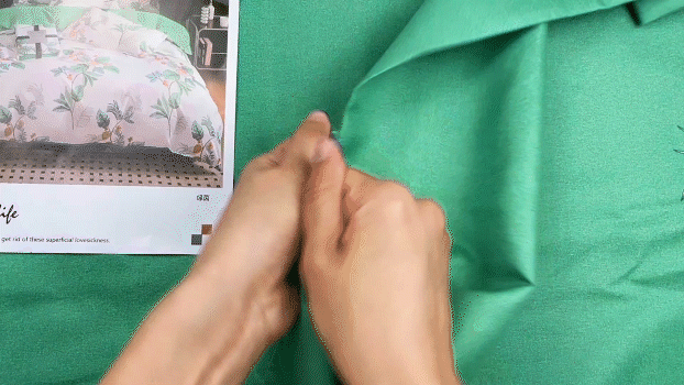 这款四件套,也比普通棉四件套吸湿透气性更好。把水滴在被套上,水迅速渗透,可见透气排湿效果巨好!