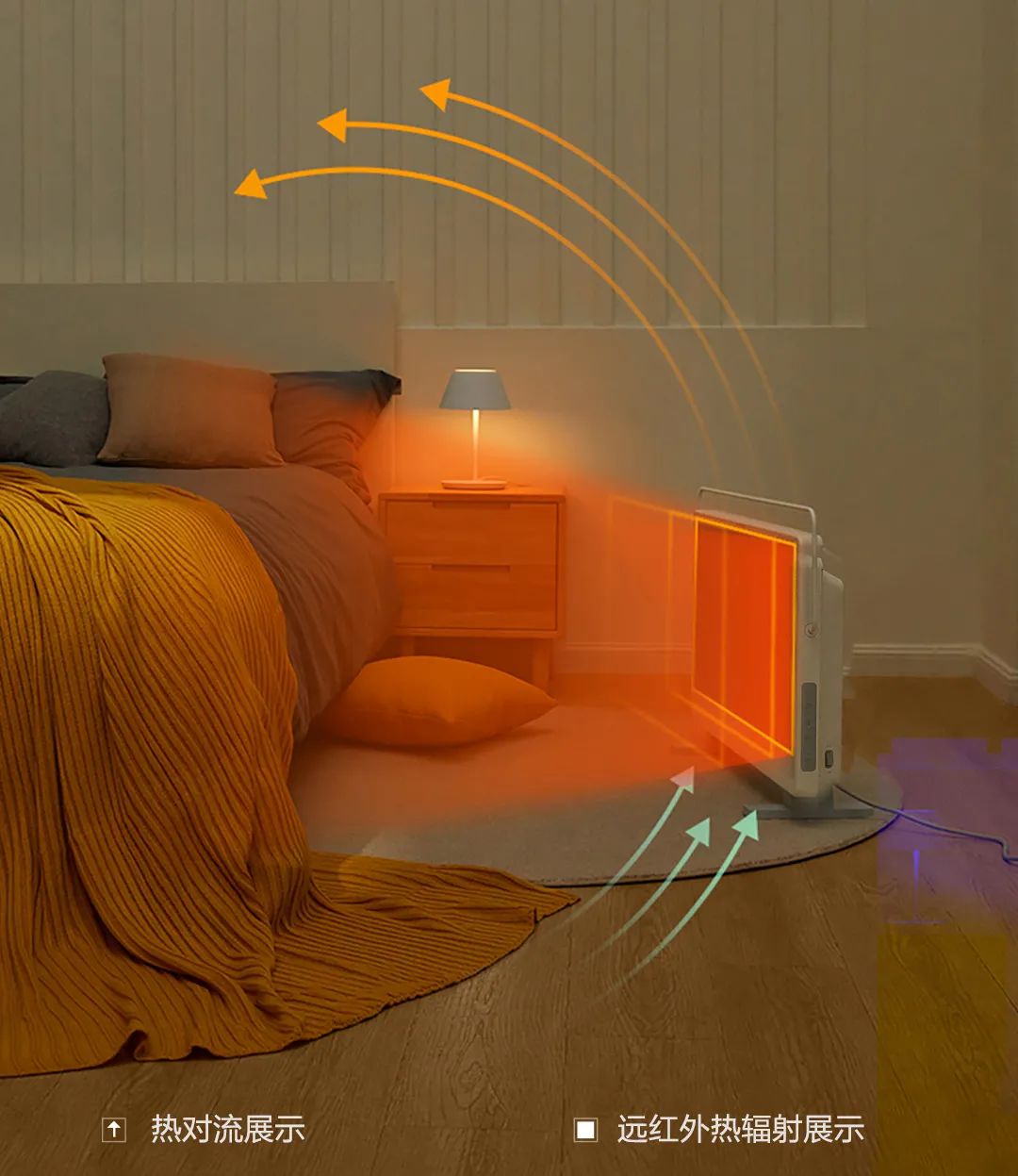 将远红外线辐射于人体的效果更好的发挥出来,带来了兼顾环境加热和就近取暖的全新取暖体验。