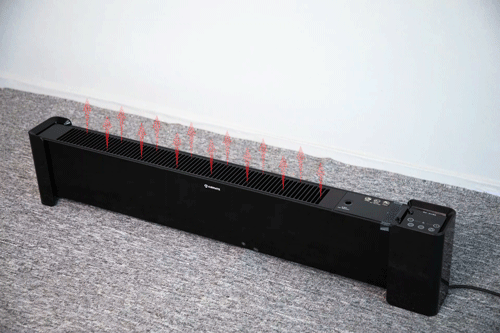 不会像踢脚线取暖器、空调那样主动吹风循环,而是通过远红外线辐射热量与室内空气的冷热交替实现自然热循环对流。