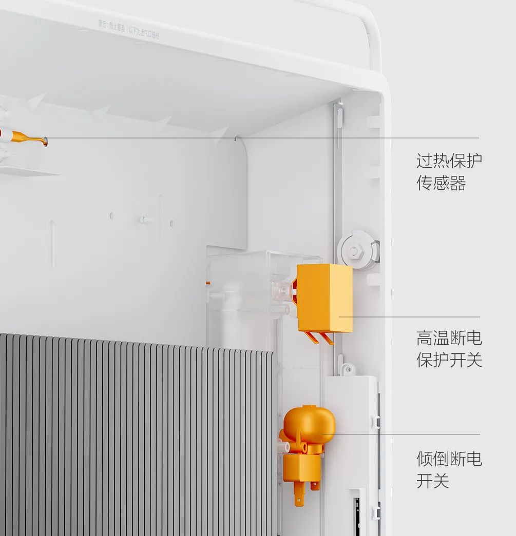考虑到电器使用的安全性,智米石墨烯取暖器设置了三重保护措施,家里的突发安全问题基本上都考虑到了。