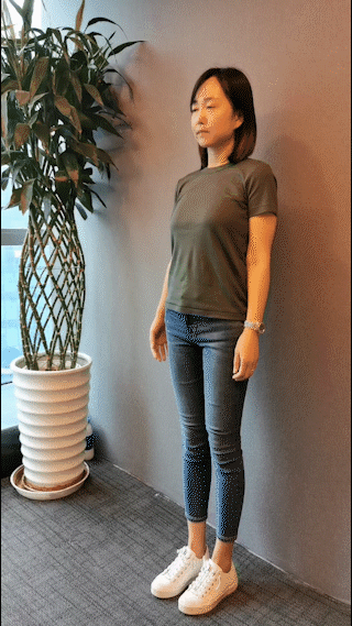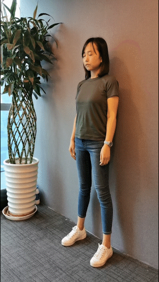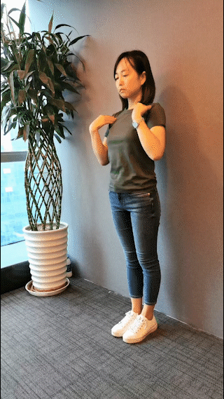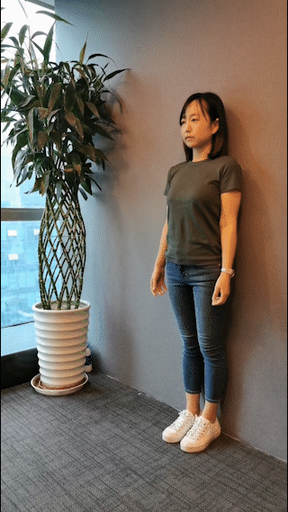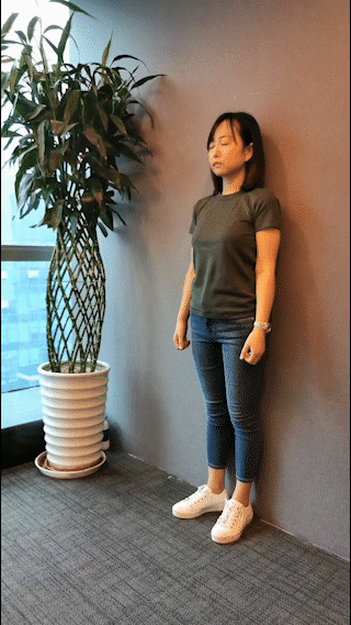 第6节:爬墙运动,患者面向墙壁,脚的前端距墙壁30厘米,双手从平肩开始,从低到高向上爬,反复练习,直至达到最大高度。