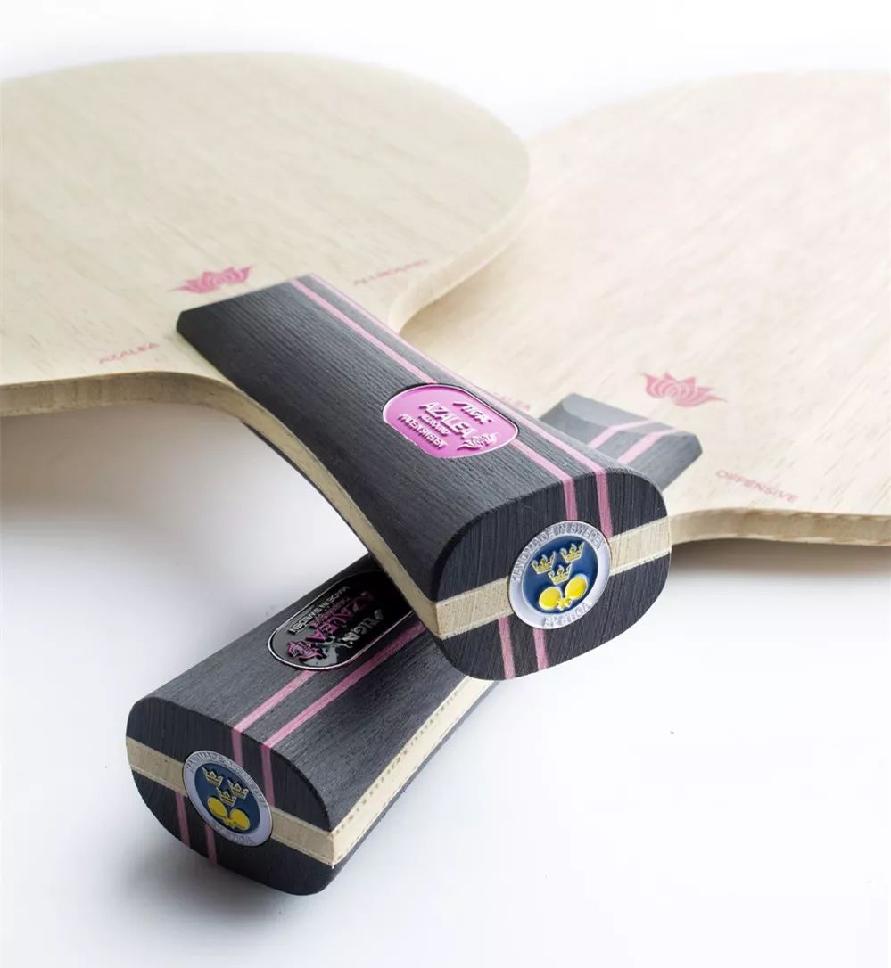 美炸了对不对?实际上,杜鹃系列的设计风格颇有日系风范,根据官方消息称:杜鹃系列为瑞典工程师受日本文化和日本乒乓球历史启发,并加以引用开发,与日本乒乓球女队深度合作, 打造出的具有日系球板均衡手感的进攻型(Offensive)和全能型(Allround)球板。