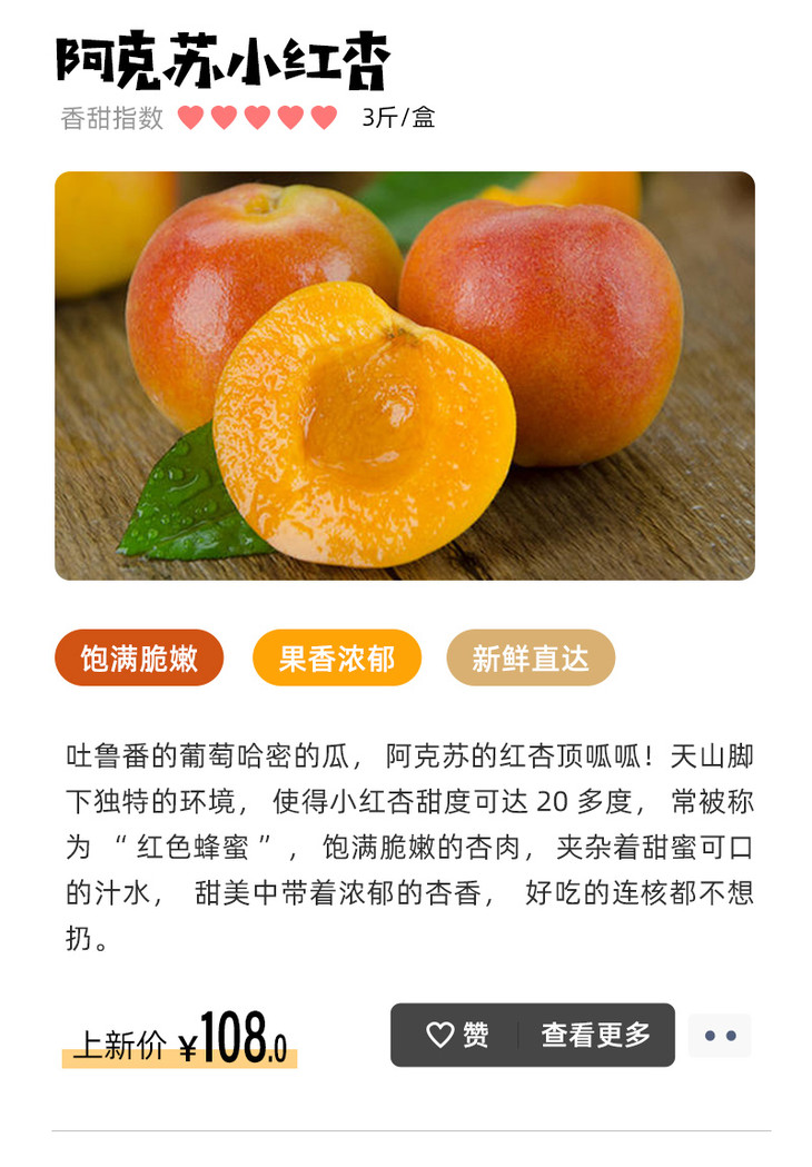 本周有:海花盐、桂花糕,天目山小香薯、阿克苏小红杏、原味+酸奶臻祼蛋糕