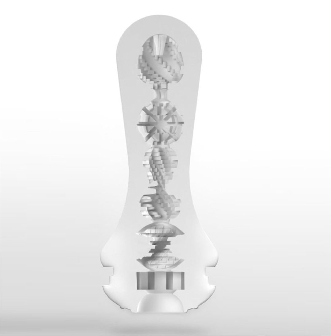 有点类似TENGA Spinner04像素的设计,在通道内多用锯齿状细小颗粒,以及球状空间进行通道排列,使用时感受紧致包裹与绵密颗粒感带来的双重刺激。