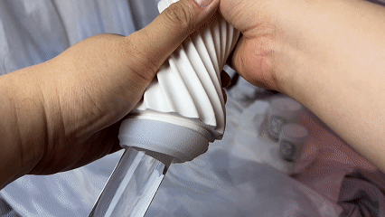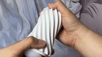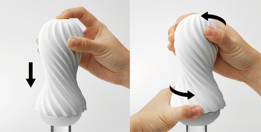 它的核心机关在于它的软壳杯身是可以旋拧的,就像拧毛巾一样顺着它的螺纹进行旋拧。在旋拧的同时会收紧杯身与内胆,如果是在使用的过程中则会挤压被子里的丁丁,产生强大的刺激,这就是第一种由旋拧动作所带来的回旋刺激。