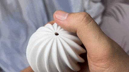 螺旋的突起线条,看似硬朗有规律的排序中其实另有玄机。它的外壳居然是软的,但看起来质感却像塑料一样哑光。而这柔软的触感正是启动机关的关键。