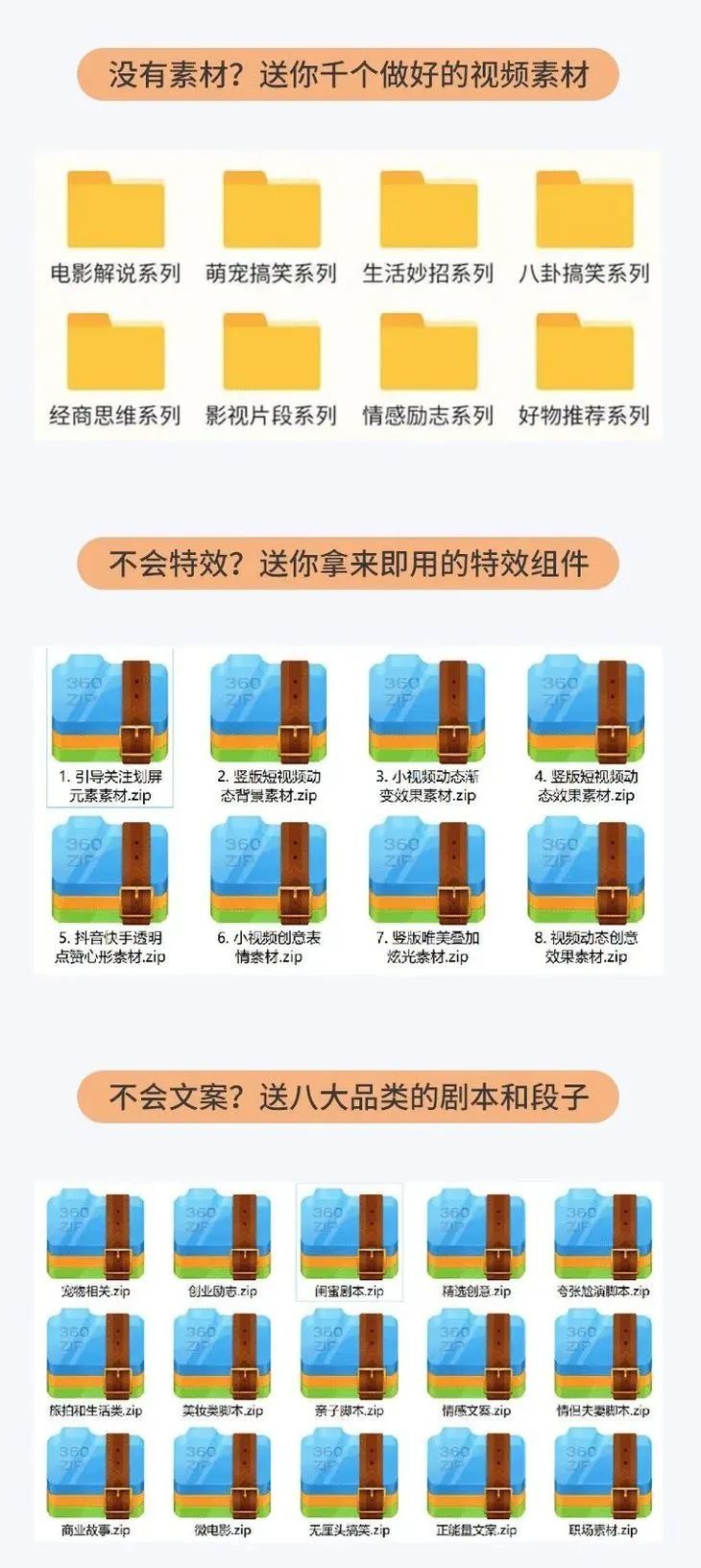 把短视频必学的内容都给你提炼出来了,让你在短时间内学习到全面的内容,不浪费你精力独自摸索。