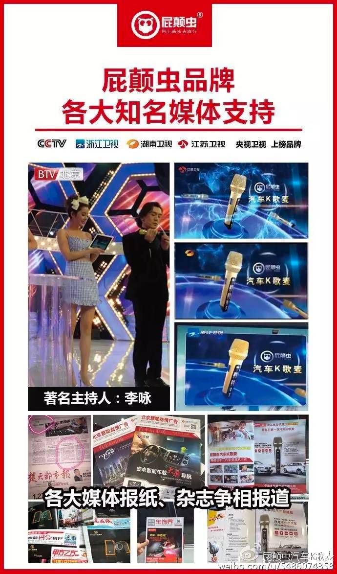 屁颠虫是张靓颖代言的品牌,在全民K歌盛行时,它是最受欢迎的热门品牌,火出天际,售价非常贵,但音效也真的好,很多明星都用屁颠虫来练歌。