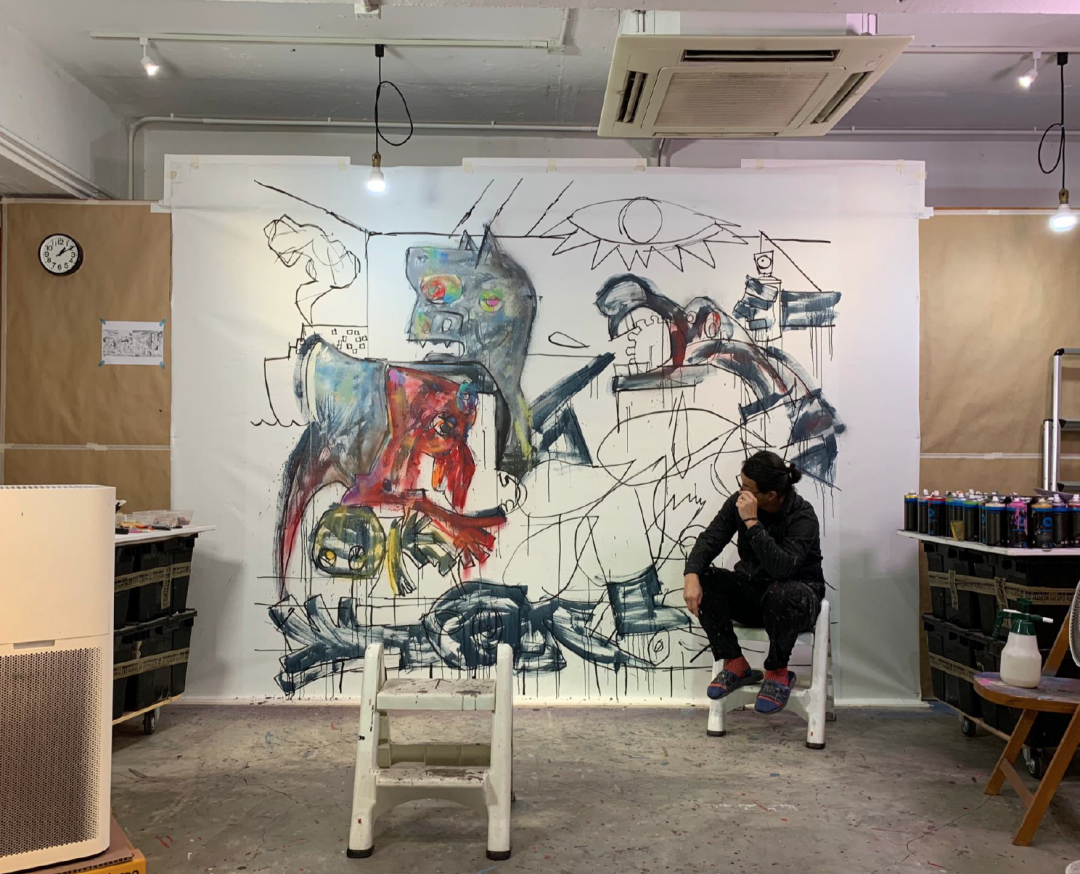 创作及绘画于2020年新型病毒肆虐全球期间的这幅壁画作品,艺术家以不同抽象的符号及概念演绎其对于这场世纪灾难之所观所感。题目《是,我们做到了! 》,英文标题("Yes,we made it.")是2020年人类发生的这场异乎寻常灾难的历史之见证,也是艺术家寄望人类同心协力共同跨越此难关的美好期许。