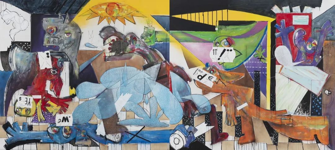 同时,2022年的今天我们再看这件作品,550cm的超长画幅展示了战争与灾难之下人民的苦难折磨,艺术家将黑白作品赋予五彩斑斓的色彩,却让扭曲的身体、杀戮的场面、错乱的世界更清晰的直逼眼前,栩栩如生。原来战争就在眼前,而政治与战争带给人类的灾难延伸到金融、经济、文化、艺术、科学、体育、生活各个领域。2022年的今天,战争,冷战,单边主义盛行,中国如何发展壮大自己,平衡世界格局,形成多边主义,相信我们能够做到!