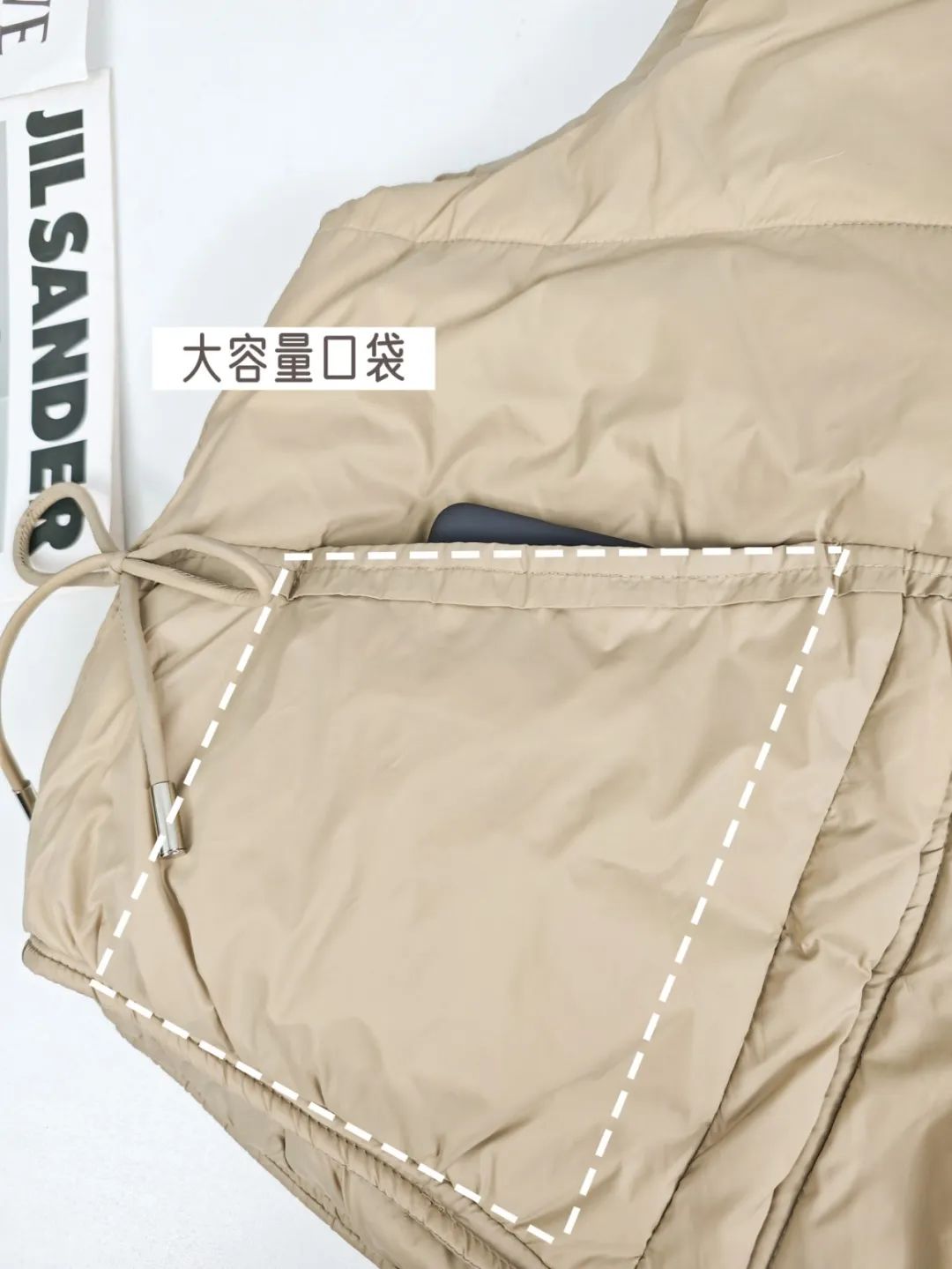 有了这样一条羽绒马甲,冬天出门隔热保暖,又不会臃肿束缚住胳膊,回到暖气房里又透气舒适。