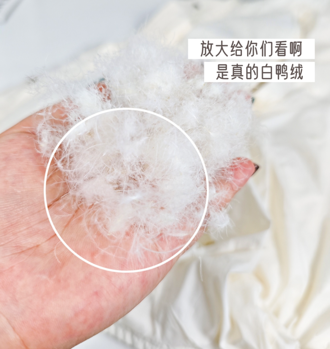 精选的都是松花江大白鸭的腹部,绒毛最细腻、洁白的部位,