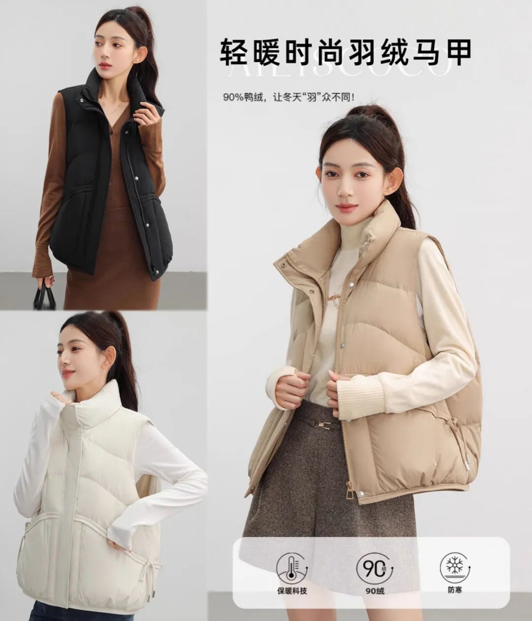 先来看看实力!这款羽绒马甲充绒量高达90%,穿上就想贴了一身暖宝宝,冬天再冷都不怕。