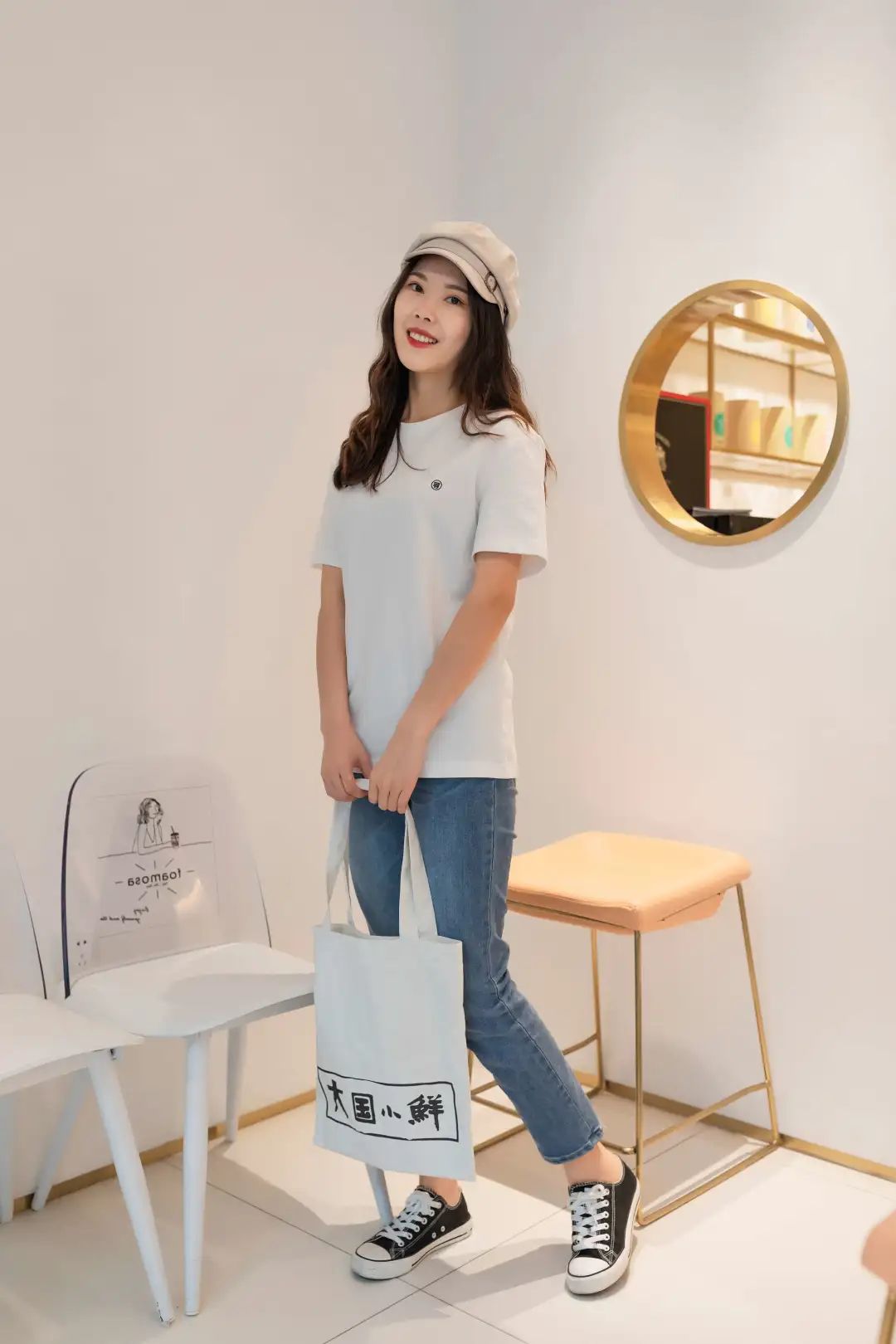 T恤最简单的穿法就是搭牛仔裤了,再蹬上一双帆布鞋,拎上喜欢的帆布袋,你就是街上最年轻活泼的崽。