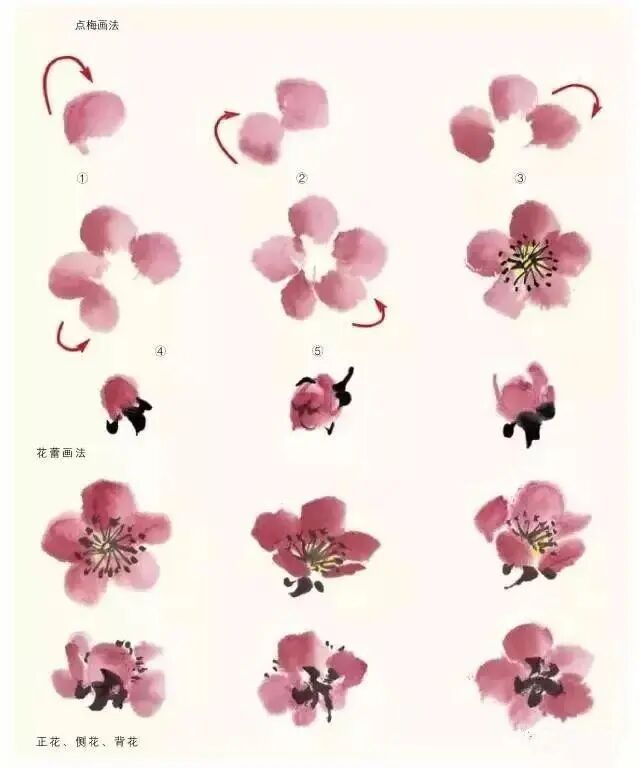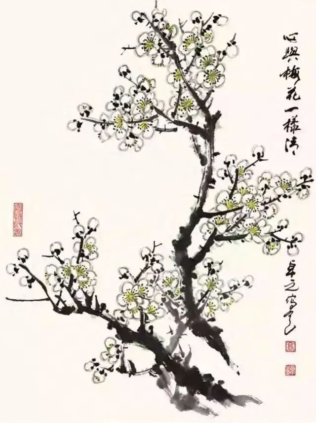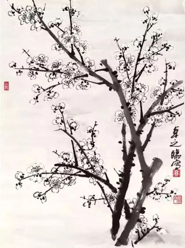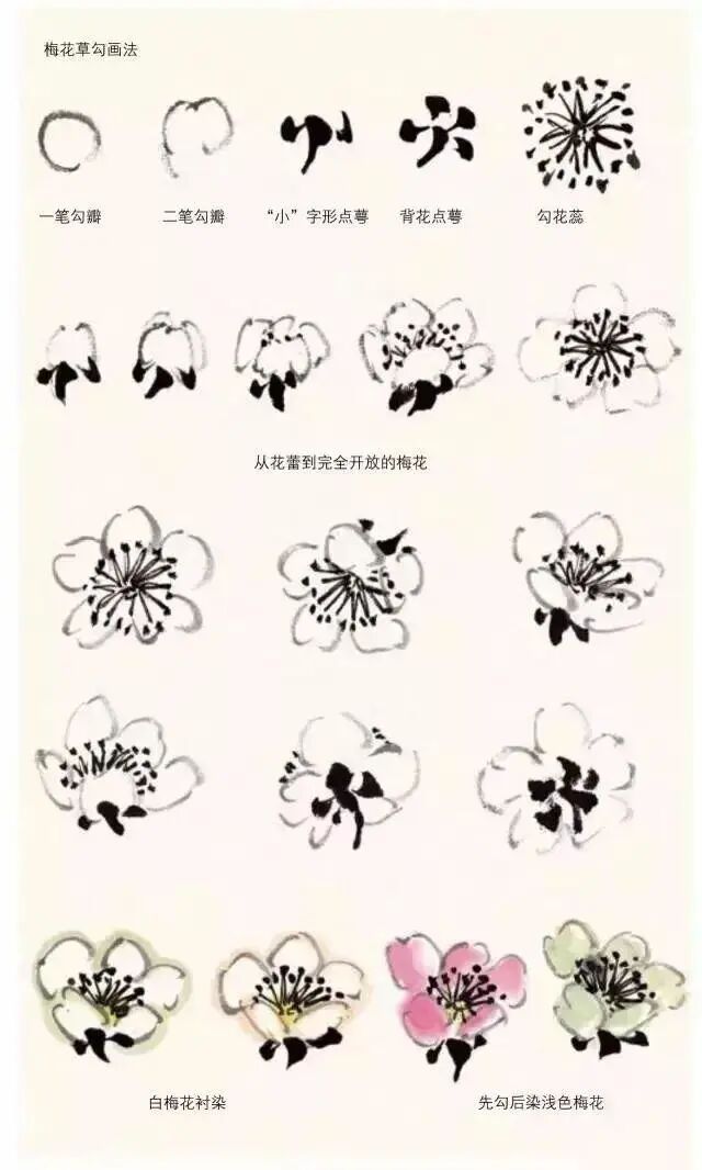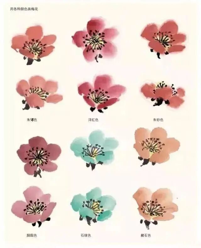 梅花的品种有单瓣与重瓣之分,有白梅、红梅、粉红梅与淡绿色梅花的颜色之别。一般画写意画多画单瓣梅花。