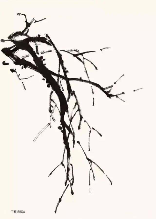 下垂枝,枝枝下垂,但也不能一味下垂,须一两枝有上扬的势头方显精神。