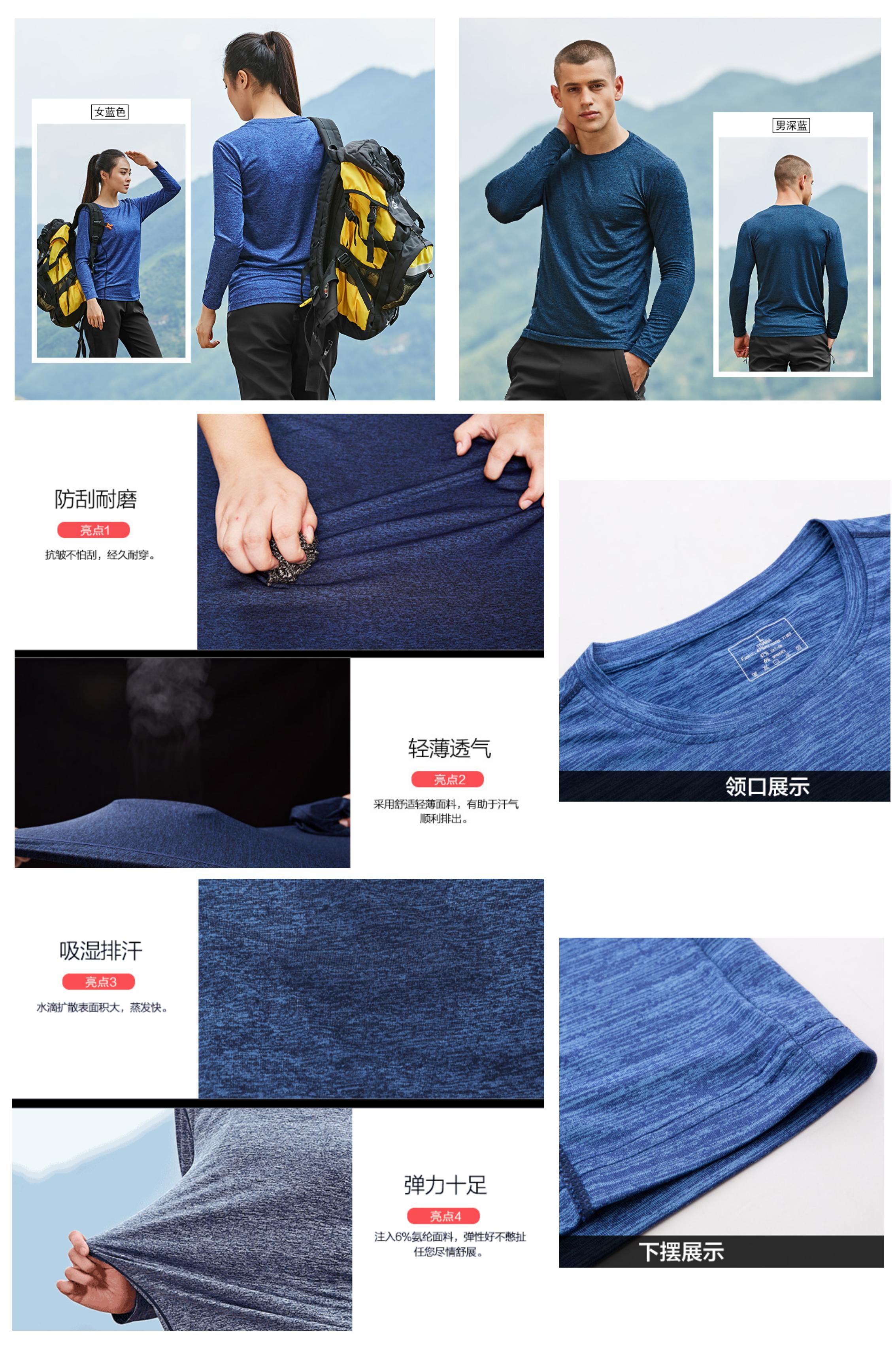 专为户外设计速干长袖,专业面料科技吸湿,让你运动后的汗液快速蒸发扩散!就是穿在身上的强力抽湿机~