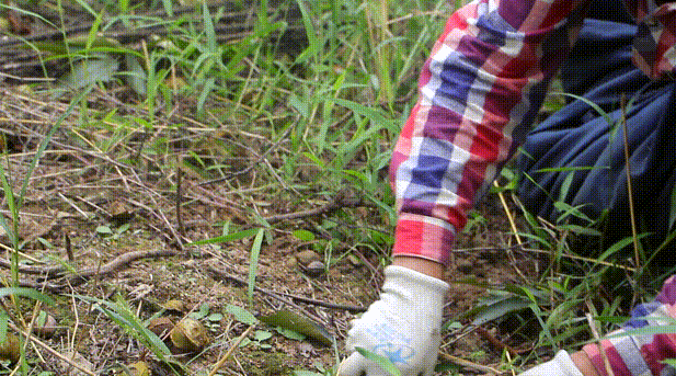 阿姨边捡边和我们说:“我们临安种山核桃有500年历史嘞,山清水秀的,长出来的核桃不仅个头大,还特别香!”